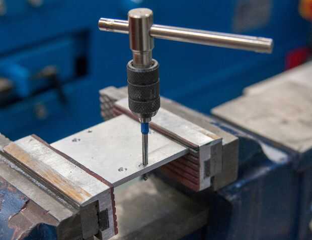 - Taladrar los tres agujeros con broca de 3,3 mm si desea utilizar roscas M4, o 4mm si no hay rosca