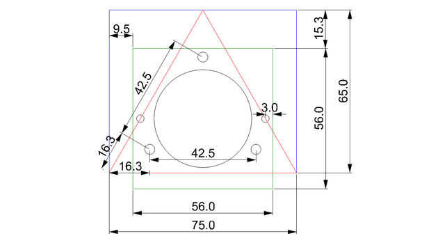 - Dibujar líneas de borde (rojo) y marca para tres agujeros M4, ver imagen de medidas