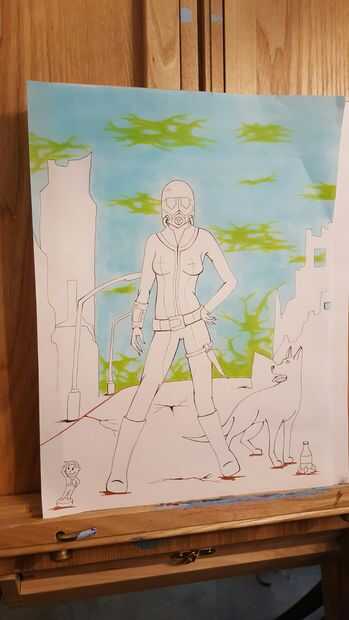 Un marcador verde he añadido nubes tóxicas, entonces utilicé diferentes unos de los azul para el cielo.