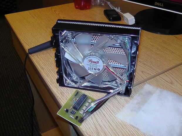 Para hacer los cables FanBus utilicé cuatro conductor teléfono cable y conectores de perno femenino de la ruptura en segmentos de 4 pines. El pinout es tierra de datos + 5 + 12. Mirando el tablero de adaptador (con el MAX232 en la parte superior) de izquierda a derecha, es al revés (+ 12 + 5 tierra datos). Mirando el controlador con el FanBus conector en la parte inferior, de izquierda a derecha, es tierra de datos + 5 + 12. Conéctelo correctamente o destruirán el ATMega168 y posiblemente más. Conector de alimentación del adaptador (con MAX232 en la parte superior, de izquierda a derecha) es + 12 tierra + 5 (coincide con el conector Molex 4-pin ATX). El conector serial en el adaptador (con MAX232 en la parte superior, de arriba a abajo) es, Rx, Tx.