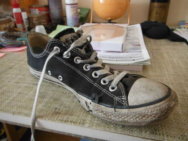 Una forma realmente simple y barata para reparar grietas y agujeros en la parte inferior de los zapatos que deja agua en. No durará para siempre, pero mantendrán secos para un poco rato más.