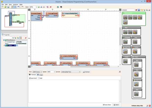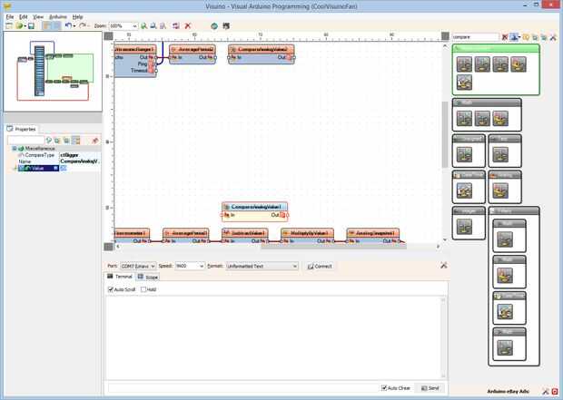 1. Tipo "comparar" en la caja del filtro de la caja de herramientas del componente, seleccione el componente de "Valor analógica comparar" (foto 1) y caer dos de ellas en el área de diseño