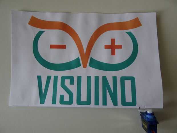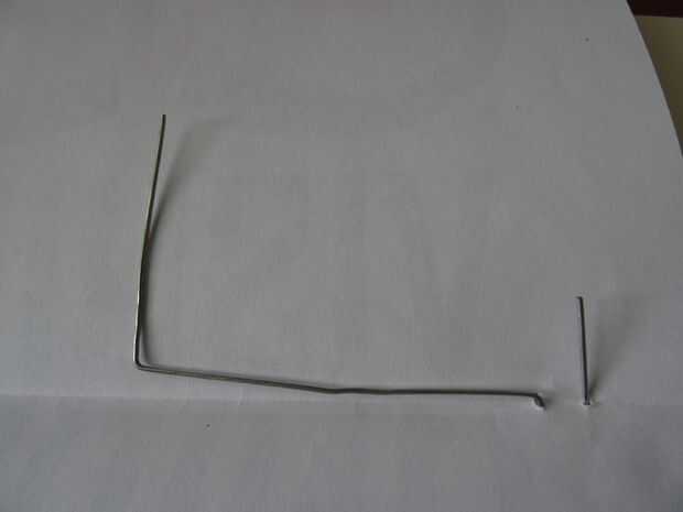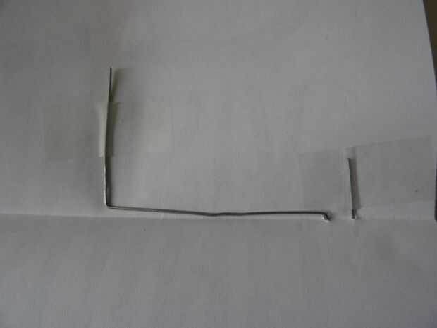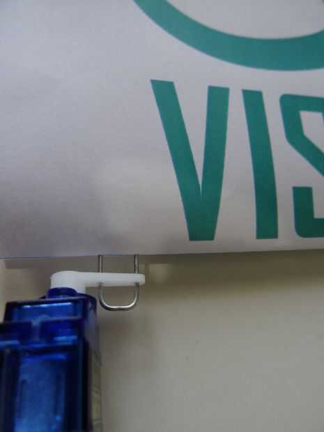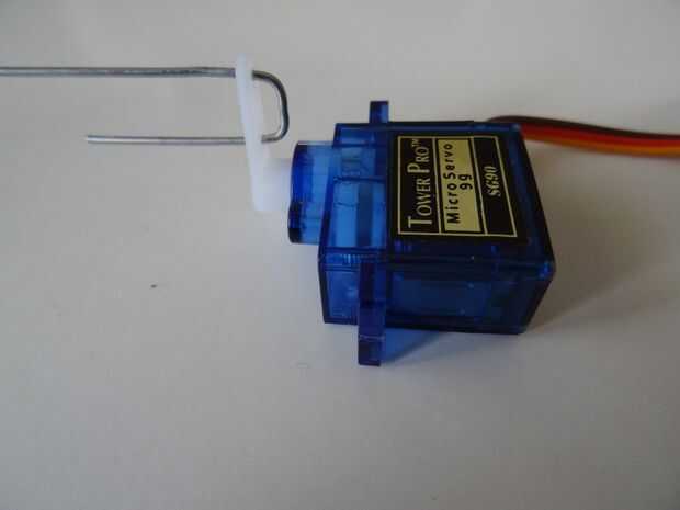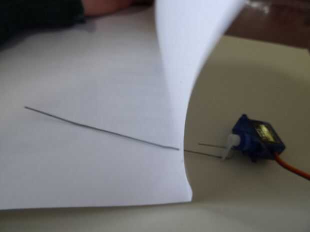 2. Forma el clip de papel en forma de U asimétrica e inserte el 2 extremos a través del brazo del Servo (foto 2)