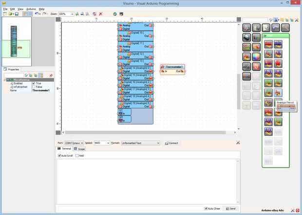 Paso 6: Inicio Visuino y añadir componentes para leer el termómetro del LM35 y reducir el ruido