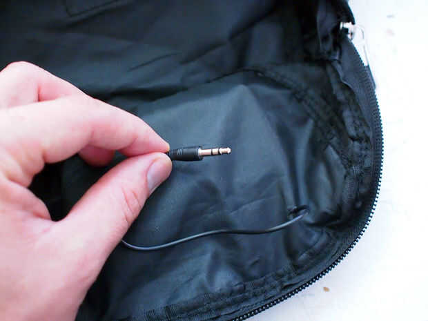 Se hizo una pequeña abertura entre el compartimiento delantero de la riñonera del compartimiento principal, será el conducto para la entrada de audio.