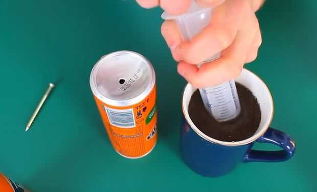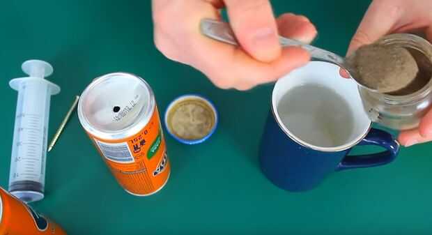 Paso 2: Juntos vamos a girar una nueva lata de Fanta en la solución de pimienta y aún nadie adivina que no es una bebida real dentro, pero una solución malvada.
