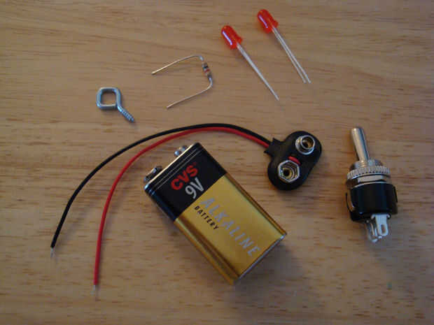 * Dos LED ' s rojos cada uno clasificado 3 voltios con cables de 20 mA.