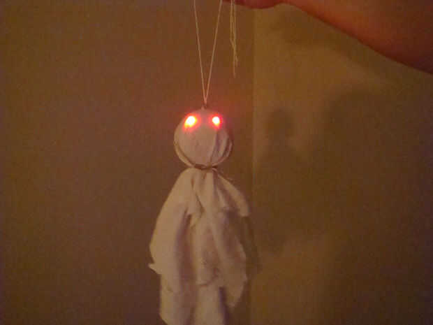 La bola de plástico era de una antigua piscina de bolas. Funcionaba bien porque es flexible, a diferencia de una bola de Wiffle que es un plástico más duro. También basta una pequeña franja de guita, pero sólo arrojó el carrete todo el cuadro. Por último, el interruptor es resistente, y usted probablemente podría conseguir mediante el uso de un interruptor de pulsador SPST (tiro solo unipolar).
