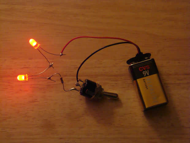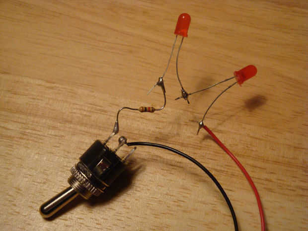 3.) el positivo conducen en que mismo LED debe soldarse al cable negativo en el segundo LED.