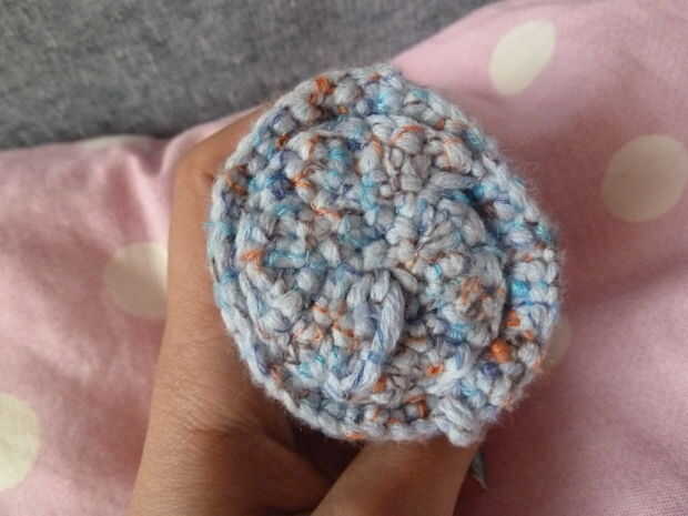 Fila 4. sc primera Inc., sc dos, repetir para esta fila