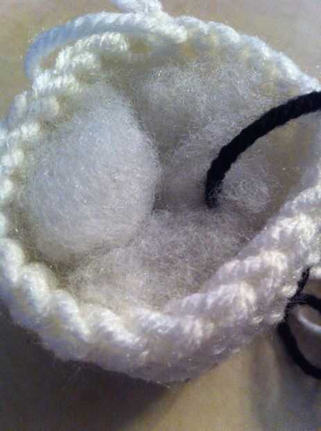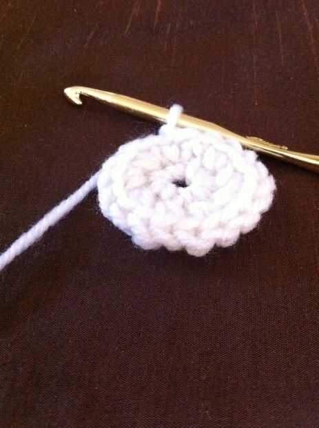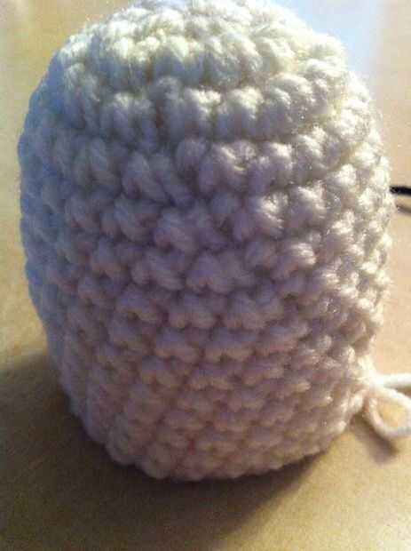 1 fila} ch 2, sc 8 en el segundo ch del gancho Ch de fila 2} 1, 2 de MP en cada MP anterior Ch de fila 3} 1, [sc 1, sc 2, repetición] Fila 4-14} ch 1, sc 1 en cada sc Ch de fila 15-20} 1, [sc 1, scdc 1, repetición]