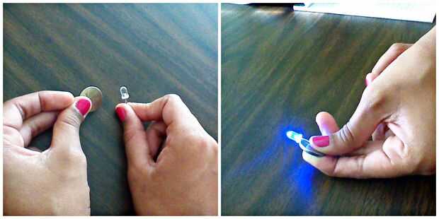 Inserte la batería célula y LED en el LED de impresión 3D adaptado.