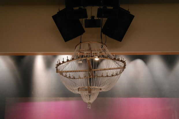Si tu lámpara no ya volando por encima de su etapa, es tiempo para llegar allí. Pones dos cáncamos en la parte superior para ello. Sin embargo, todos los sistemas de aparejos son un poco diferentes, así que no puedo dar buenas instrucciones, además del hecho de que no hice esta parte yo mismo. Mi departamento de teatro tenía realmente un instalador profesional ven y montar la lámpara sobre el delantal, para que pudiéramos controlarlo desde la pasarela. Todo depende, sobre todo con un espectáculo como fantasma, donde la araña es a veces sobre la audiencia. Sólo tener en cuenta que porque pones dos armellas en, se pueden conectar para separar los controles y sacuda su creación horizontalmente como caer verticalmente. También recuerda que tienes que de alguna manera ejecutar un cordón de extensión para el anillo superior de todo el asunto de la energía.