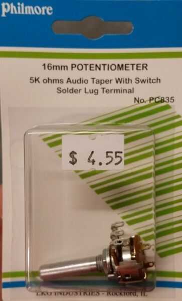 La soldadura de los cables de la olla k 5 a circuitboard donde el pequeño bote de k 5k o 10 que viene con el kit fue supuesto para ir. Asegúrese de que los cables están lo suficientemente largos para el montaje de la jarra en la placa frontal.