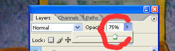 Seleccione la capa de perro azul y establecer el modo de fusión a la pantalla y la opacidad a 79%