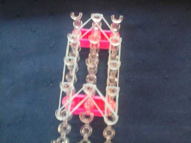 Paso 1: fuentes de Necesita un kit de inicio para el telar del arco iris y algunas elásticas.Paso 2: Colocar las bandas Iniciar colocando un color de borde y no empezar a poner encima de todo lo que tienes que hacer en los patrones.Paso 3: Colocar la