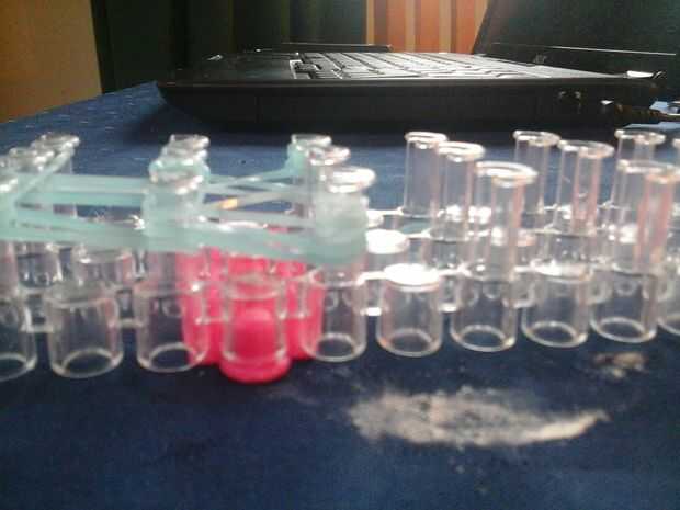 Paso 1: fuentes de Necesita un kit de inicio para el telar del arco iris y algunas elásticas.Paso 2: Colocar las bandas Iniciar colocando un color de borde y no empezar a poner encima de todo lo que tienes que hacer en los patrones.Paso 3: Colocar la