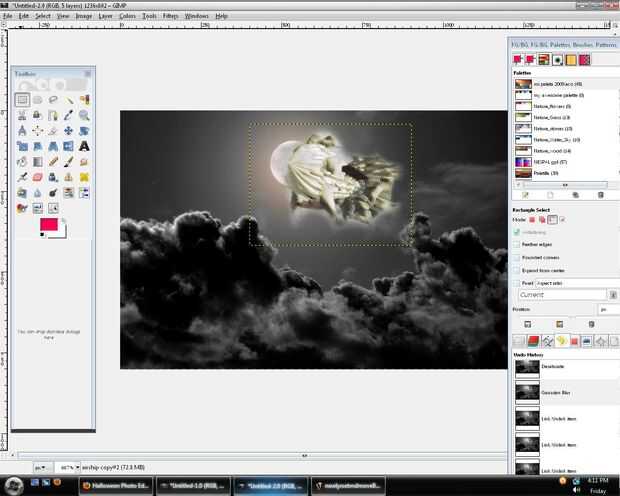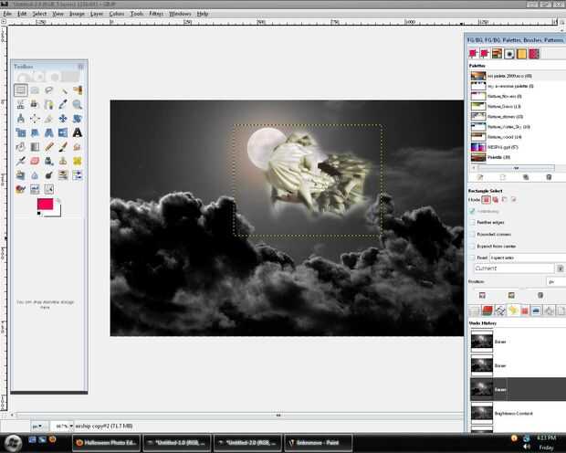 Ahora para el fondo. Esto es puramente una decisión personal pero no me gustó cómo oscuro el fondo era. Así que selecciona la capa de fondo y haga clic en la pestaña de colores en la parte superior de la página. Luego haga clic en brillo y contraste y baja el contraste un poco para quitar el borde de las nubes. Y eso es todo! ¡ listo! Ahora simplemente haga clic en archivo > Guardar como y luego el nombre su archivo lo que quieras. Asegúrese de que el nombre pones una extensión de archivo. (por ejemplo, .jpg o .png) Ahora haga clic en guardar y esta bien los mensajes que aparecen.