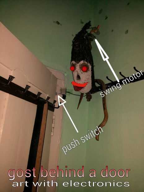 . Este fantasma como cara se realiza mediante un nido de bird(hanging type).which que podemos arreglar detrás de una puerta. Al cerrar la puerta el fantasma comienza a parpadear sus ojos y comience a mover demasiado y fro se siente como si su llamado.