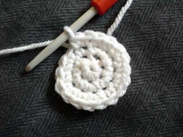 Hacer 1 punto bajo en la próxima puntada y 2 single crochet puntadas alternas. Eso hace que 18 punto bajo al final de esta ronda.