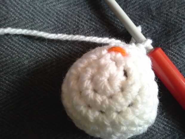 Colocar un jalón, he colocado un marcador naranja para indicar el primer crochet de cada ronda y seguir haciendo 1 punto bajo en cada crochet. Eso hace que 18 punto bajo al final de esta ronda.