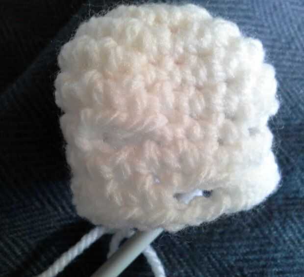 Hacer 8 punto bajo, entonces cadena 2 y unirse en el ganchillo 11. Continuación punto bajo desde el 11 hasta el 18.