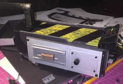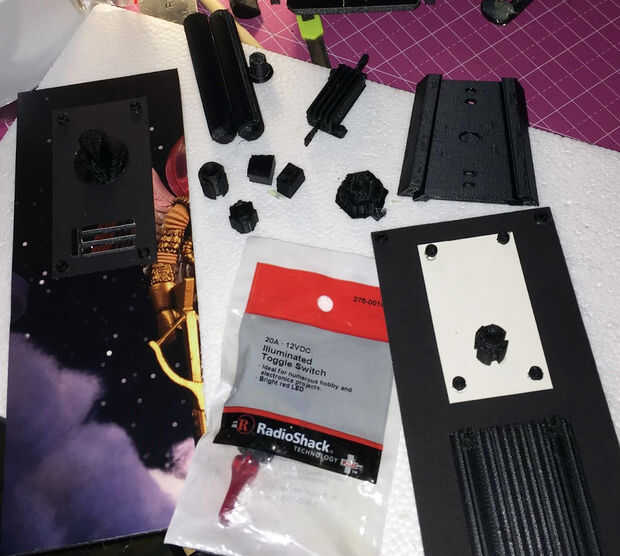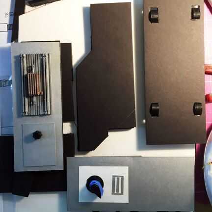 Los paneles laterales se fije a las paredes de la caja externa y tienen la mayoría de los geegaws. Sólo cortar mis paneles de espuma y añade un rectángulo pequeño de cartulina a cada panel para las perillas vivir. El panel de la izquierda está listo para pintura de plata una vez que usted coloque la cartulina, el panel de la derecha puede ser pintado antes o después de la adición del disipador de calor como lo es también de plata. No olvides golpear los bordes con la pintura también.