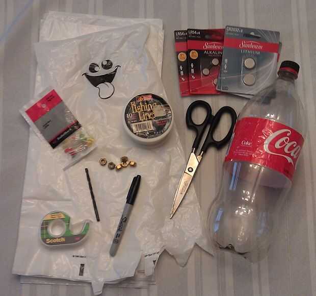2. blanco fantasma bolsas (cualquier blanco que encaja perfectamente en la botella de pop o tela blanca)
