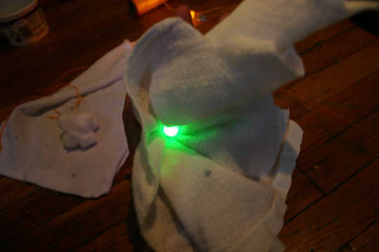 Coloque el cuello de fantasmas por lo que el LED inferior sólo está pegando hacia fuera. Esto iluminará el cuerpo de su espíritu.