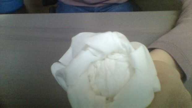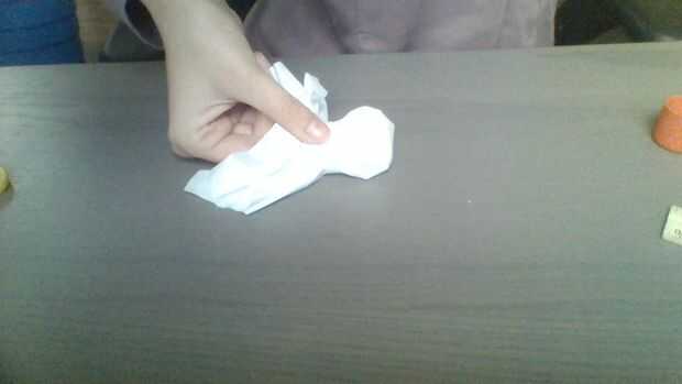 Para la cinta, envuelva la cinta alrededor del "cuello" pegamento queda dentro. La cinta debe ser suelto, pero no tan flojo que se puede ver el espacio entre la cinta y el tejido. Cuando la cola está hacia arriba, el círculo de la cinta debe ser lo suficientemente grande para admitir al menos un níquel, pero no un half-dollar. Algunas personas prefieren ceñir el cuello fuertemente, pero yo no.