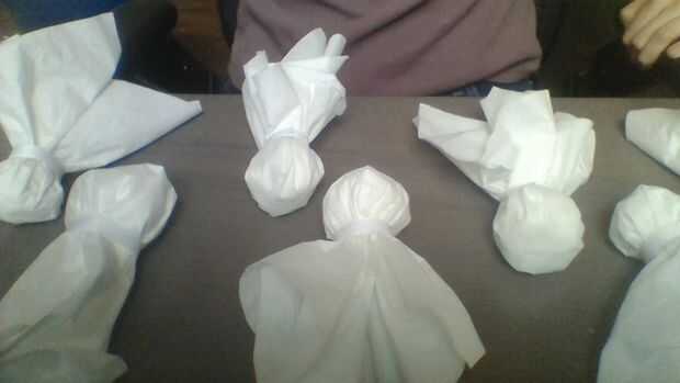 lo que usted necesita:tejidostijerasun rotuladoruna bombilla de luzbordado blanco cadena o hiloPaso 1: tomar 3 tejidos y estén desplegadasluego apilarlos uno encima del otrolos tejidos deben ser desplegadosPaso 2: ahora que necesita la bombillaColoqu
