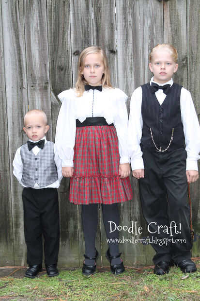 Por lo que los visten. Elegí ropa iglesia que parecía la más vieja-timey. Y los chicos llevaban algunas pajaritas que caliente pegados juntos. Los muchachos tenían chalecos... la muchacha tenía un vestido de vieja escuela y medias gris oscuros. Llano bonito.