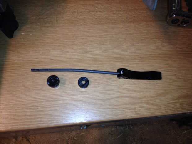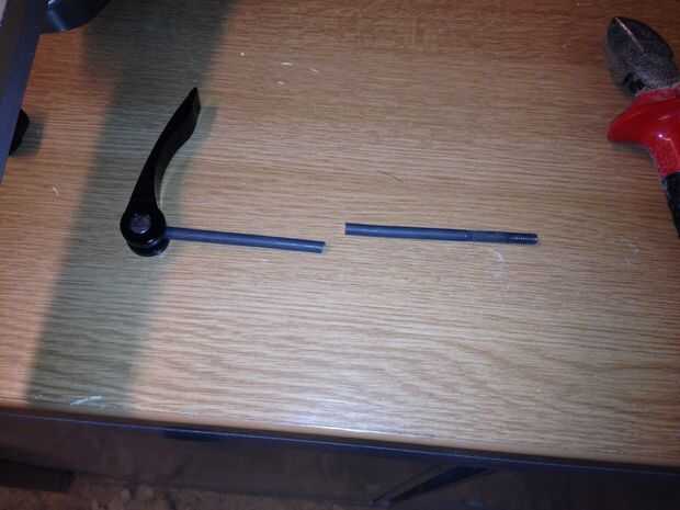 Inserte la broqueta de liberación rápida y marque el punto donde este debe cortarse, ser generoso, es más fácil recortar otra vez si se cortan demasiado.