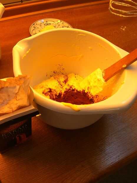 Si esto se hace, tomar a un lado algunas cucharadas de la crema y agregar el cacao con el resto de ella.