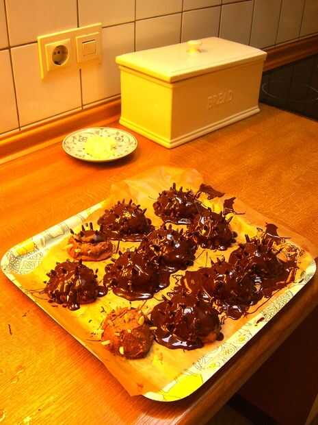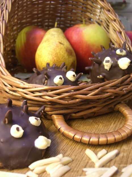 Esté casi listo, ahora solo calentar 200g de cobertura de chocolate y le dan color natural a los erizos. Espere hasta que se enfríe la capa y decorar el hedghogs con la crema que se llevaron aparte a unos pasos antes.