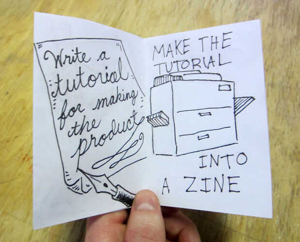 Al hacer el diseño de una página zine que sólo tienes 8 rectángulos pequeños, incluyendo el frente y contraportadas, en el que se describa su tutorial. Asegúrese de que caben en ese espacio su proyecto entero.