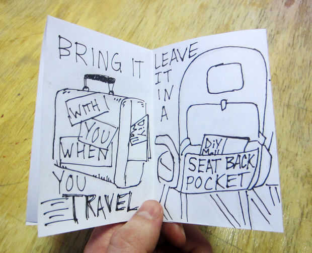 Aquí está el verdadero punto de este tutorial: dejando su zine donde un público cautivo de los viajeros aéreos pueden toparse con él.