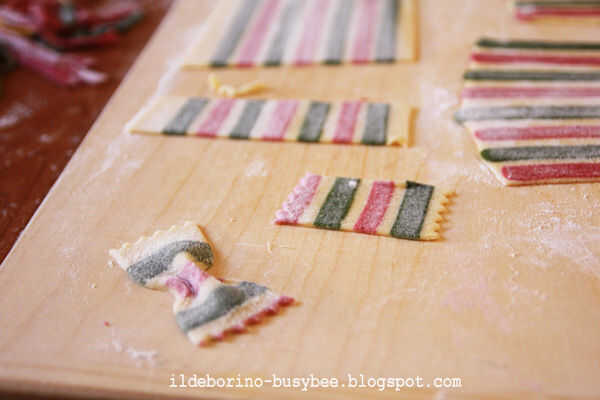 Ponerlos en bandejas de papel espolvoreadas con un poco de harina y hacía secar durante 24 horas antes de usarlos porque temía que si se cocinan mientras estaban todavía frescas perdería su forma. Después de lo que, sin embargo, vi una cocina Mostrar en TV donde, por pura coincidencia, un cocinero hizo unos farfalle pasta que nad les cocida inmediatamente. Mantenían su forma, pero eran mucho más gruesa que la mía y mucho menos hermoso. Aunque no estoy totalmente convencido, tal vez funciona, pero no arriesgaría. Tengo que decir que estuvimos muy contentos con los resultados de mi jugando con masa de pasta, un plato de bonito de farfalle con salsa de salchichas grandes. La cocina era más de lo esperado, pensé que tardaría un par de minutos pero de hecho tardó unos 10 minutos para la pasta que se cocinan a la perfección, la textura fue grande, al dente y con el centro ligeramente más compacto. Mucho trabajo, pero estaba bien vale la pena el esfuerzo.