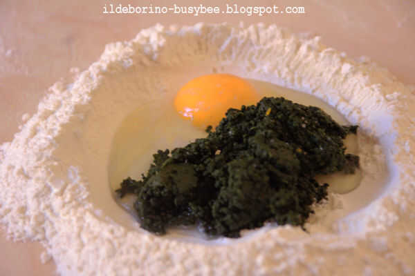 Para la espinaca masa agregar la espinaca al vapor previamente si utilizar espinacas congeladas, deje que se enfríe, exprimir y ejecutarlos por el pasapurés o puré con una batidora.