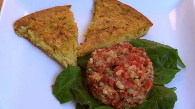 En esta receta, estoy haciendo una versión más saludable y ligera de farinata, que es un pan plano italiano tradicional de garbanzos. Farinata procede de Liguria, norte de Italia y se come como una comida en la calle. Hecho con harina de garbanzo, Farinata es crujiente por fuera y cremosa por dentro. También he creado un tartar veganas que acompañará este delicioso, sabroso pan plano.