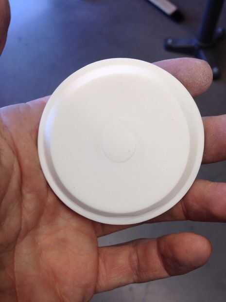 El molido del Corian de la tapa al mismo tiempo como hacer la base. Para obtener el ángulo de 45", usé una fresa de bisel de 1/2". Para sujeción de piezas... Usé (lotes) de doble cara cinta. Por alguna razón, la trayectoria de herramienta de bolsillo creado extrañas crestas en la parte (primera imagen), que enarenar hacia fuera a mano.