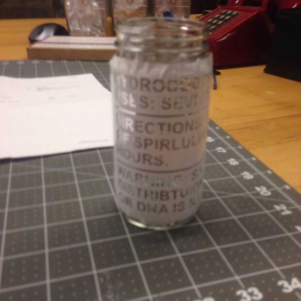 Para ayudar a transmitir la narración - preparación fármacos en casa - crear acompañando unos pedazos: botellas de arranque para diferentes fármacos y un gel tapón de relleno de la cultura.