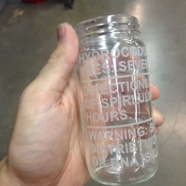 Yo con chorro de arena las letras en la botella con un vinilo de corte de la plantilla.
