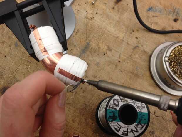 En las imágenes de arriba, había roscado de hilo conductor a través de la cinta de cobre y también la había soldado para conexión adicional.