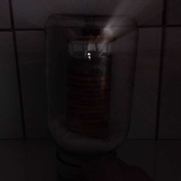 También quería tener luz en mi casa de luz. Yo estaba pensando usar una vela cuando mi mamá me recordó que la vela no tenga aire dentro del frasco. Idea de basura. Entonces me decidí por luz eléctrica. Tengo a mi hermano, que es muy bueno con la tecnología e inventando cosas, para que la iluminación para mí (¡ muchas gracias, David).