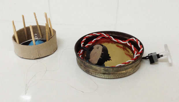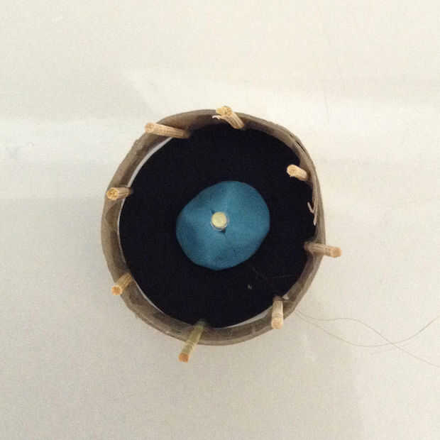 Para hacer el soporte para el LED, cortar un anillo de 3/4 pulgadas ancho el papel higiénico del rodillo. Cortar un círculo del mismo tamaño que el anillo de papel rígido. El círculo de papel a un extremo del anillo de cinta. Romper los palillos por la mitad y pegarlas en el interior del anillo alrededor de todo el camino. Trate de asegurarse de que todos los palillos de dientes sobresalgan la misma longitud para que el techo sea estable. Asegure el LED dentro del ring en el papel rígido con algunos play doh o cera.