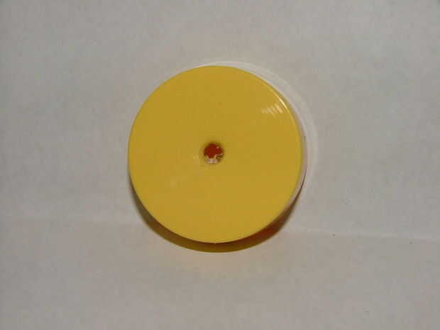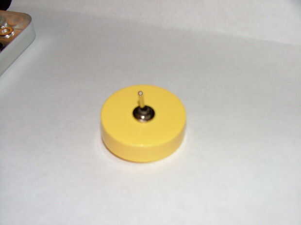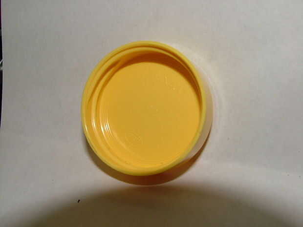 A continuación tomar el pequeño tornillo y destornillador y alinear en la marca que usted hizo. (Asegúrese de tener algo debajo de la tapa para evitar rayar la superficie de trabajo). Presione hacia abajo y atornillar en esa marca hasta que esté completamente a través. Comprobar su tamaño cada cuantas vueltas al principio para evitar hacer el agujero demasiado grande.