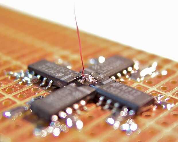 Soldadura rápida y cuidadosamente todos los 4 LEDs y el anillo de alambre juntos. (segunda imagen)