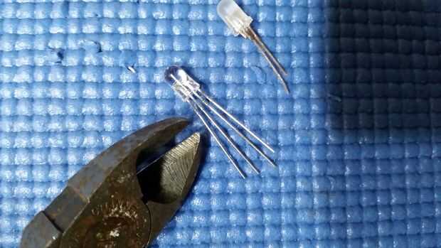 Son LEDs de RBG, pero sólo tendrá 3 rojo y 3 azul así que usted puede cortar los hilos que no son necesarios. el largo es tierra para que no corte que uno!.