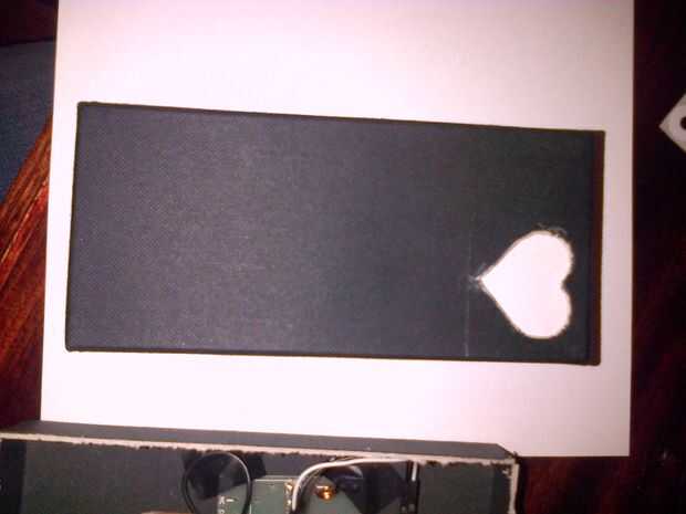 Encontrar una bonita caja para colocar todo esto en. El cuadro que encontré fue perfecto. Una vez que ha colocado cada cosa en el entrenamiento del cuadro donde quieres que la luz lanzó, estoy haciendo esto para mi novia así que corte el conjunto como una forma de corazón, lo puede hacer cualquier agujero que te gusta. Coloqué un trozo de papel de corte detrás del agujero, esto es sólo para iluminar uniformemente lanzó.